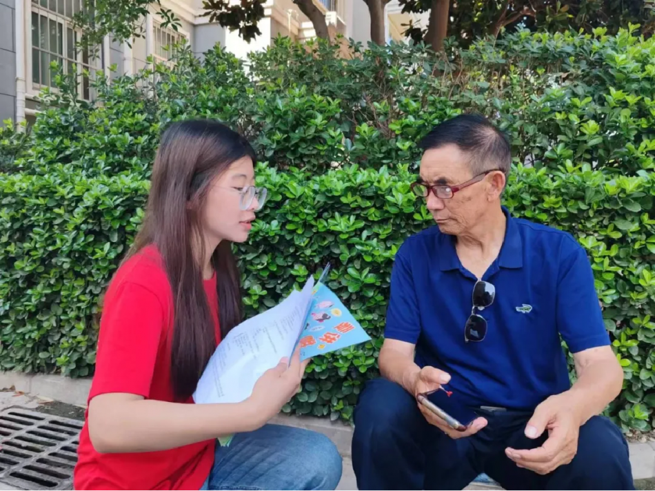 7月19日,实践团前往清华园社区。活动准备阶段,成员在清华园社区开展问卷调查工作,为居民讲解活动内容并邀请居民参与,反响热烈。