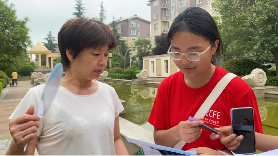 实践团成员储莹欣于清华园社区进行问卷调查和普通话宣传