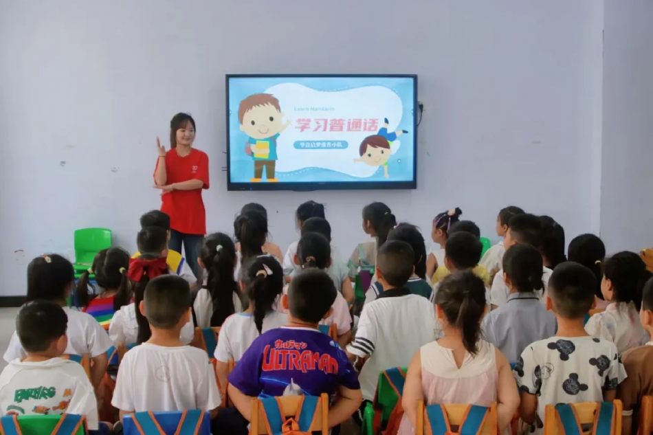 宣讲人王晨宇给小朋友们进行学习普通话的宣讲